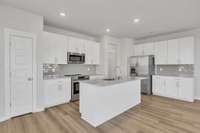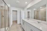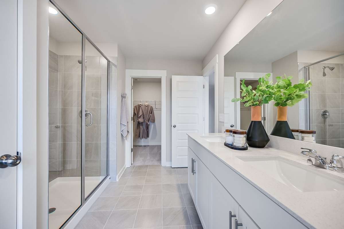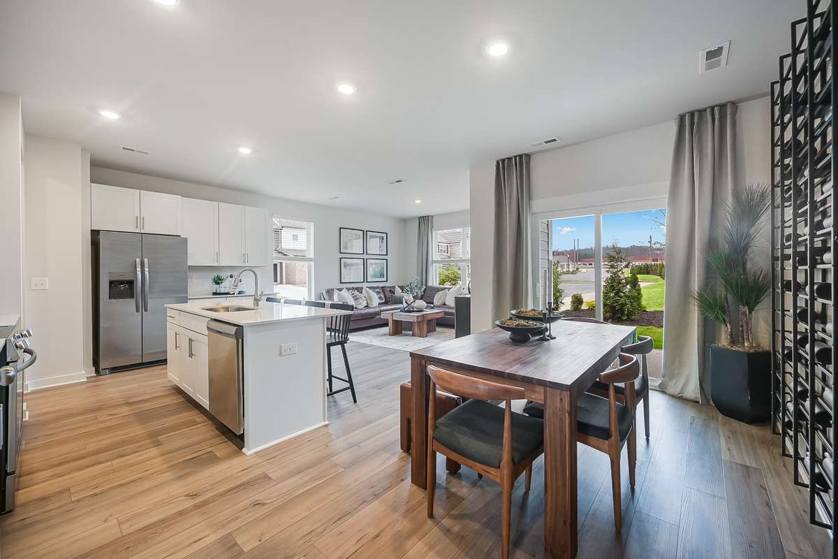 This new two- story townhome design combines comfort and style. The first floor features an open- concept layout connecting a living room for shared moments, a dining room for memorable meals and a kitchen for inspired cooks. Nearby sliding glass doors provide access to a covered patio for outdoor enjoyment. On the second floor, two secondary bedrooms and a spacious owner’s suite with a luxe bathroom and large walk- in closet provide restful retreats for family members and overnight guests. * Images from a furnished model of this home. Actual configuration and features may vary.