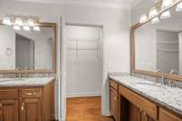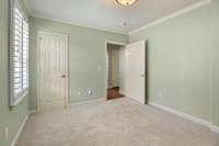 The main- level primary suite features a tray ceiling, walk- in closet, and private bath with a carefully designed, barrier- free shower ideal for wheelchair or walker access. . Two guest bedrooms and a full hall bath are thoughtfully positioned on the opposite side of the home for added privacy. Upstairs, a spacious bonus room offers limitless flexibility as an office, hobby room, exercise space, or guest suite.