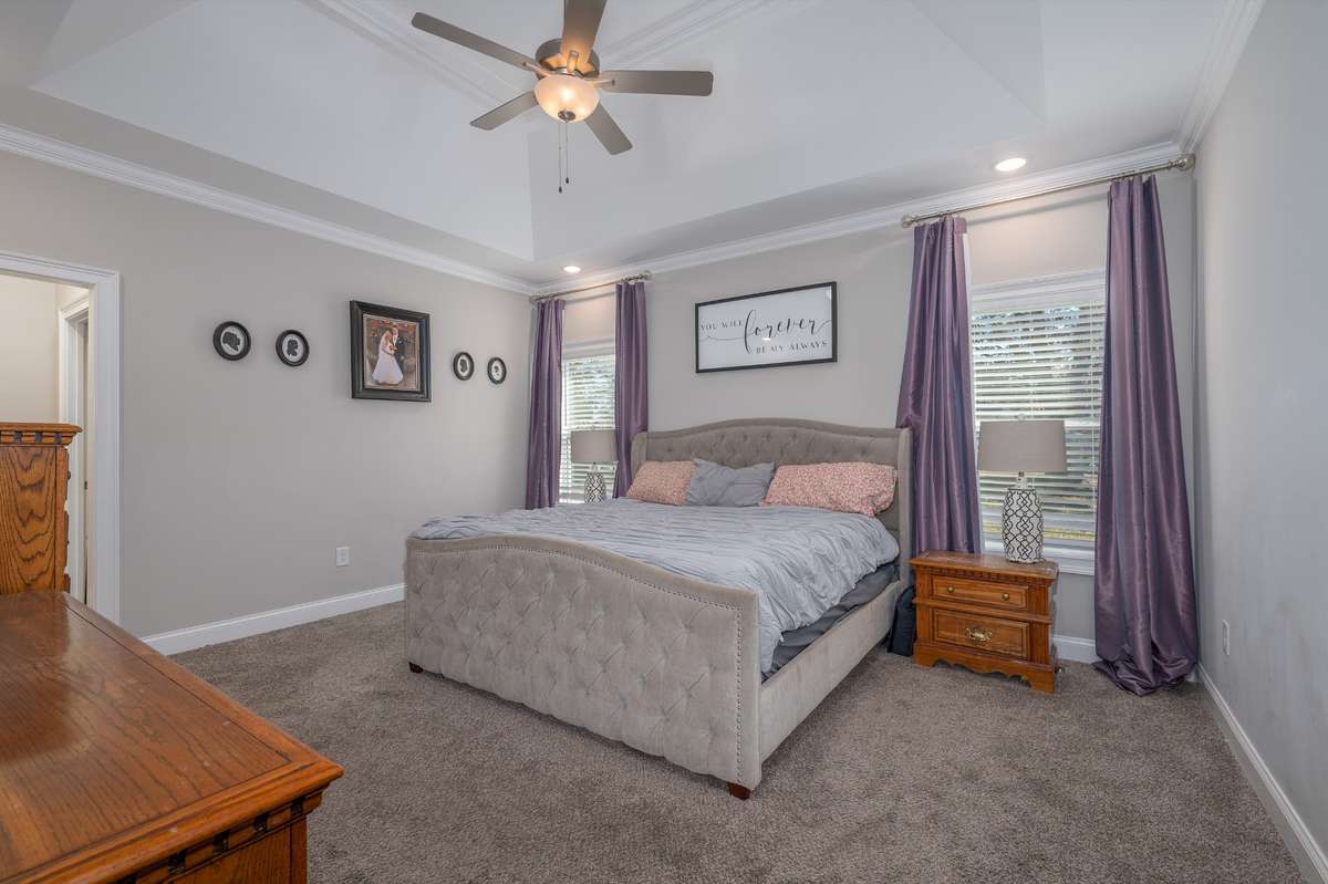 Welcome to 1835 Belotes Ferry Road — a beautifully crafted custom- built Fleming Home offering true one- level living in a peaceful Lebanon countryside setting. Designed with families and entertainers in mind, this home features an inviting split floor plan, soaring tall ceilings, and a seamless open- concept layout that connects the kitchen, great room, and dining space for effortless gatherings.