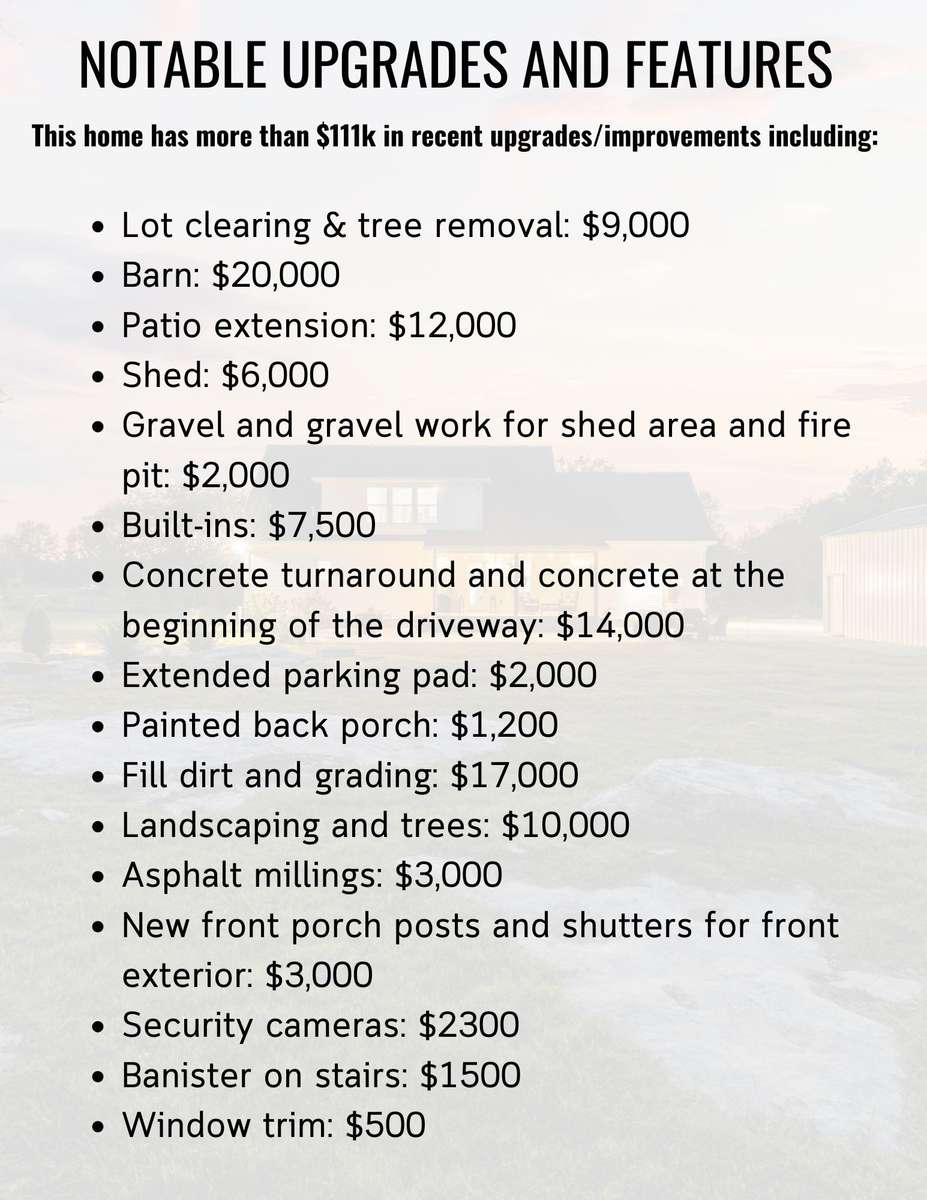 CHAPEL HILL SCHOOLS! Welcome to your private retreat on 5 peaceful acres- just 1 hour away from BNA and Downtown Nashville! A long winding driveway leads to this modern farmhouse, complete with a wide front porch perfect for rocking chairs, morning coffee, and incredible sunset views! Inside, the open- concept main floor is ideal for both entertaining and everyday living. Enjoy a spacious living area, well- sized kitchen, and large dining space with room for a table that seats 8+ as well as a main- level primary suite for ultimate convenience. FIBER Internet! The hallmark of this home is the outdoor living space.. . Relax on the covered back porch, host gatherings on the extended concrete patio, or unwind by the cozy fire pit overlooking the serene backyard. Raised garden beds, attractive rocky landscaping ( less mowing!) , a storage shed, and a 20x25 barn with soaring 16’ ceilings provide both beauty and function. All this, just 5 minutes from Henry Horton State Park, less than 10 minutes to everything Chapel Hill offers. Peace, natural beauty, and convenience combine to make this the perfect blend of modern comfort and country charm - don’t miss it!