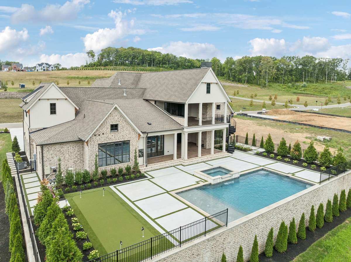 Builder to include Grove Golf Membership Fee with Full Price Offer. Magnificent Modern Tudor by Trace Construction at The Grove! ! Looking for a new home with all the custom finishes you want, with a beautiful location backing up to open space, and with a new pool too? Here it is! As you enter this beautiful home you' re immediately drawn to the private study with custom built- in bookcases, floor- to- ceiling picture windows and lots of light. The Great Room and Kitchen draw you into the living spaces, where you' ll no doubt enjoy entertaining friends and family each evening. Oversized Chef' s Kitchen with prep island and serving island, with views through the Dining Room to the pool terrace. Don' t miss the working Scullery with an oversized Pantry as well. Luxury extends to the oversized Primary Suite with 16' ceilings, beautiful walk- in shower, garden tub and laundry station. Her closet will dazzle you with a 14' x15' space with custom closet built- ins, dressing table and large island in the center of the room. With 6 bedroom suites ( 2 down/ 4 up) there is room for everyone! ! Step out back and spend lazy afternoons in the pool by Top Tier Pools with Baja lounge step, and oversized hot tub! Putting green to practice your game as well! One of the best features of this home is the elevated covered porch off the second level, with views to the 11th green, the community orchard and creek below! Wood- burning fireplace makes this the perfect outdoor living space year- round!