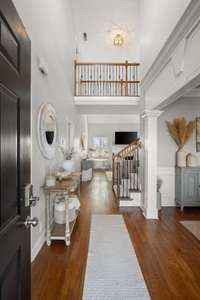 Welcome to this beautifully maintained all- brick home in the highly desirable Rockvale Meadows neighborhood~ Rich hardwood floors, neutral paint, and upgraded lighting greet you as you enter~ The beautifully refreshed kitchen features quartz countertops, white subway tile, white cabinetry, stainless appliances, and a walk- in pantry~ A gorgeous white porcelain farmhouse sink is truly the centerpiece of this bright and open kitchen~ A thoughtfully designed layout provides exceptional flow between the kitchen, breakfast area, living room, and dining room…ideal for gatherings and everyday living~ The living room impresses with a two- story design filled with natural light, a graceful catwalk overlook, and a cozy gas fireplace—the perfect place to unwind~ The spacious primary suite located on the main level features an updated bathroom with a new vanity, new flooring, and new lighting~ A roomy walk- in closet within the primary suite is perfect for storage and organization~ Added window shutters & updated ceiling fans~ Upstairs offers incredible versatility with two bedrooms, a large bonus room perfect for movie nights, billiards, or entertaining, plus an additional flex room that works beautifully as an optional 4th bedroom or dedicated office~ Outdoor living is highlighted with two covered porches—a covered front porch overlooking the large, level front yard, and a covered side porch perfect for grilling and entertaining~ The fenced backyard backs up to open farmland, creating a peaceful, country atmosphere with privacy…perfect for gardening, play, or pets~ Additional features include a two- car garage, mature landscaping, a community pool and pavilion, low HOA, and convenient access to triple Rockvale schools, Murfreesboro shopping, and I- 24~ This move- in ready home has been lovingly updated and thoughtfully designed—offering space, comfort, and modern style in one of Rockvale’s favorite neighborhoods~ Shows like a model home…Schedule a showing today!