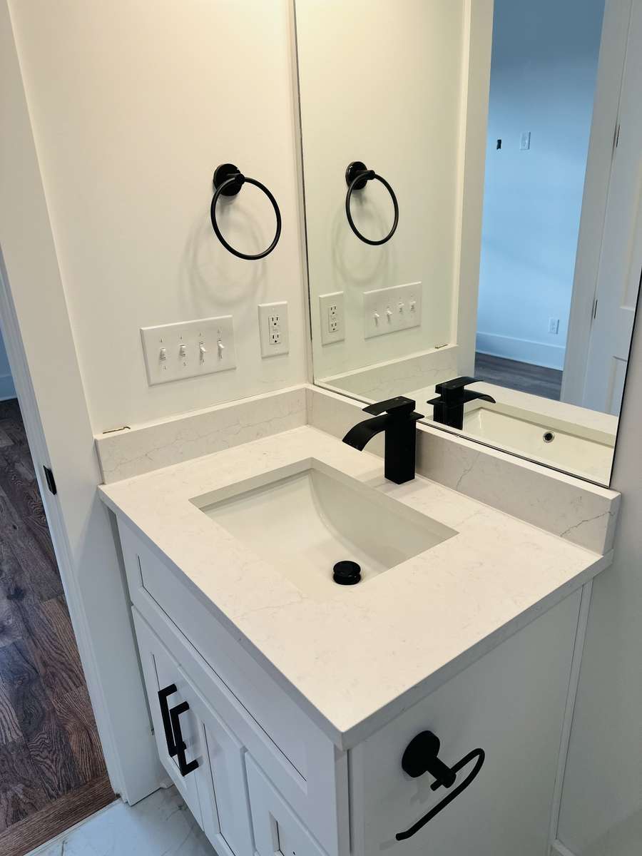Inside, the chef’s kitchen shines with quartz countertops, stainless steel appliances, and ample workspace. The first- floor bedroom includes its own luxurious ensuite bathroom, perfect for guests or multi- generational living. Upstairs, you’ll find three additional bedrooms, including the spacious primary suite, for a total of 4 bedrooms and 3. 5 baths.