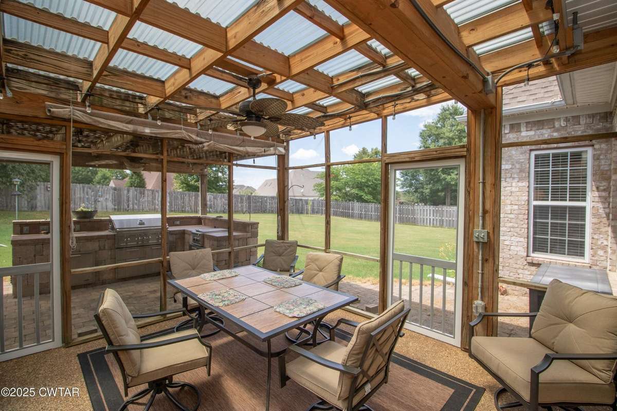 Welcome to this spacious and beautifully designed home, ideally situated near the University School of Jackson. With its convenient location, you' ll have easy access to schools, shopping, and dining. This home offers a flexible layout, featuring five bedrooms and four bathrooms. Four bedrooms are conveniently located on the main floor, including a private master suite. The split floor plan provides a peaceful retreat for the homeowners, complete with a full bath and two closets. Upstairs, the fifth bedroom is a versatile space that can serve as a bedroom or bonus room and has its own full bathroom and closet. This setup is perfect for hosting guests. The main level boasts hardwood floors and tile, creating a seamless and elegant feel. You' ll find a large living room, a well- appointed kitchen with an eat- in area, and a cozy keeping room. For more formal gatherings, a spacious dining room is ready for entertaining. Enjoy the outdoors with two relaxing screened- in areas and a wonderful outdoor kitchen, perfect for entertaining. This home is a perfect blend of comfort, style, and practicality.