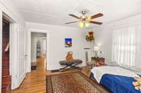 Step inside and you’ll find original hardwood floors, a bright kitchen with stainless steel appliances, a formal dining area, and a renovated bathroom. Upstairs offers its own second kitchen and full bath with potential for a private entrance — perfect for Airbnb guests, a home studio, or friends visiting for the weekend. The cozy back den opens onto a vast yard with ample space for gardens, pets, and outdoor activities. Additionally, a full basement provides space to tinker, store, or expand.