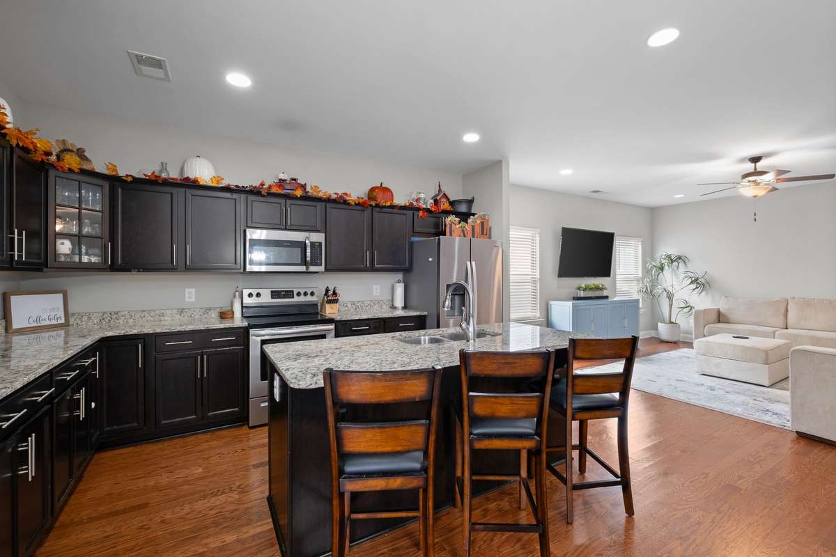 This fabulous one- level brick home sits on a coveted fenced lot backing to peaceful trees and nature. The ideal split- bedroom layout features two bedrooms and a full bath up front, with the private primary suite tucked in the back, complete with a walk- in closet and oversized linen closet. The expansive living, dining, and kitchen area flows as one large open space, perfect for everyday living and effortless entertaining. A dedicated laundry room with a drop zone adds convenience and organization. Step outside to a fenced backyard with both a covered and uncovered patio, ideal for relaxing, grilling, or hosting friends. Located in a wonderful neighborhood with a community pool and just minutes from shopping, dining, and everything you need, this home is an incredible value at this price. Home is UC with a 48 hour FROR agreement.