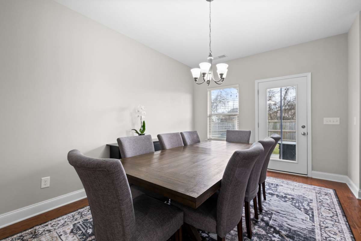 This fabulous one- level brick home sits on a coveted fenced lot backing to peaceful trees and nature. The ideal split- bedroom layout features two bedrooms and a full bath up front, with the private primary suite tucked in the back, complete with a walk- in closet and oversized linen closet. The expansive living, dining, and kitchen area flows as one large open space, perfect for everyday living and effortless entertaining. A dedicated laundry room with a drop zone adds convenience and organization. Step outside to a fenced backyard with both a covered and uncovered patio, ideal for relaxing, grilling, or hosting friends. Located in a wonderful neighborhood with a community pool and just minutes from shopping, dining, and everything you need, this home is an incredible value at this price. Home is UC with a 48 hour FROR agreement.