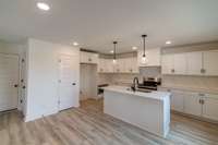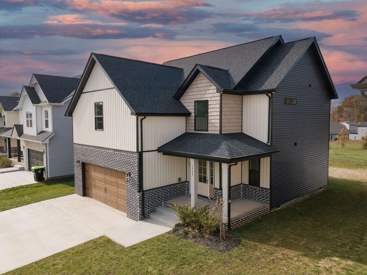 This stunning 4- bedroom, 2. 5- bath home is a true gem, boasting a BLACK OUT window trim package with spacious rooms and a seamless flow from the kitchen/ dining area to the inviting family room featuring a cozy fireplace. The Master Suite is a retreat with a Tray ceiling, a generously sized walk- in closet, and a luxurious Master Bath showcasing an oversized tile shower. The interior and exterior are graced with premium upgrades, creating a sophisticated ambiance. Enjoy the outdoors on the covered back porch, perfect for relaxation. Practicality meets innovation. This residence, crafted by Means Construction using the esteemed Hollingworth Plan, ensures quality in every detail.