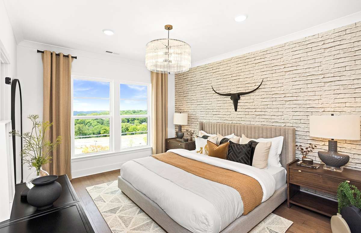The gourmet kitchen includes rich wood- tone cabinetry, added café storage, a large quartz island, double ovens, and a spacious walk- in pantry. The primary suite boasts a massive walk- in closet and a spa- inspired bath with dual quartz vanities and a tiled walk- in shower with bench. Enjoy unforgettable sunsets from your private rooftop terrace—ideal for entertaining with panoramic Downtown views. Located minutes from the exciting River Side, River North, and Neuhoff developments, Skyline offers unbeatable value in one of Nashville’s most dynamic areas. Ask about our exclusive in- house lending programs with rates as low as 4. 99% through Pulte Mortgage.