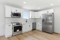 The light- filled living area features clean lines and updated finishes, flowing effortlessly into a sleek, remodeled kitchen complete with modern cabinetry, stylish countertops, and stainless steel appliances. Three spacious bedrooms provide flexibility for family, guests, or a dedicated work- from- home space. Both bathrooms have been refreshed with modern touches, including new fixtures and updated tile work. Step outside to a generous backyard—perfect for gatherings, pets, or future outdoor enhancements. Situated in the heart of North Nashville, this home puts you minutes from downtown, Germantown, Buchanan Arts District, local parks, and major commuter routes