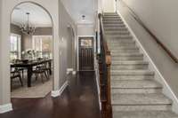 Step inside to an inviting open- concept kitchen, living, and dining area on the main floor—perfect for everyday living and entertaining. Full of character with archways, updated lighting, and lots of custom and crown moulding. Upstairs, you’ll find 4 spacious bedrooms, one of which is large and makes an amazing bonus room! Do not miss the large primary bedroom with fabulous jetted garden tub and separate shower with a true walk- in closet. This layout offers plenty of flexibility for guests, a home office, or a playroom. Enjoy the outdoors with a fully fenced yard and a massive covered patio, ideal for relaxing, grilling, or hosting gatherings. The fully fenced back yard with large patio is ready for all your celebrations and relaxing nights. Something that makes this home unique compared to others is that right behind your back fence gate, you can walk 5 steps directly into the community pool area, giving you the feel of having a pool, playground, and extra parking right in your “extended” backyard. The home is truly move- in ready with brand- new carpet, fresh paint, updated lighting, and a stylish new backsplash—all just installed. Ask about our available lender credit to help reduce your closing costs!