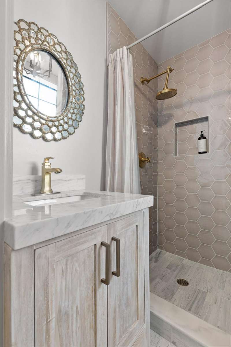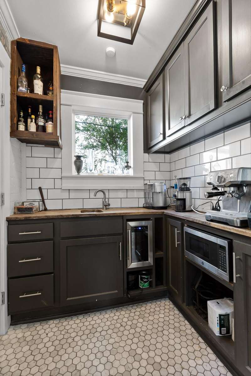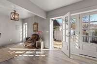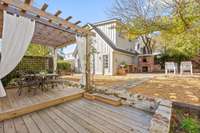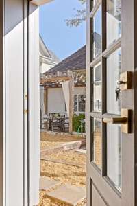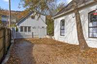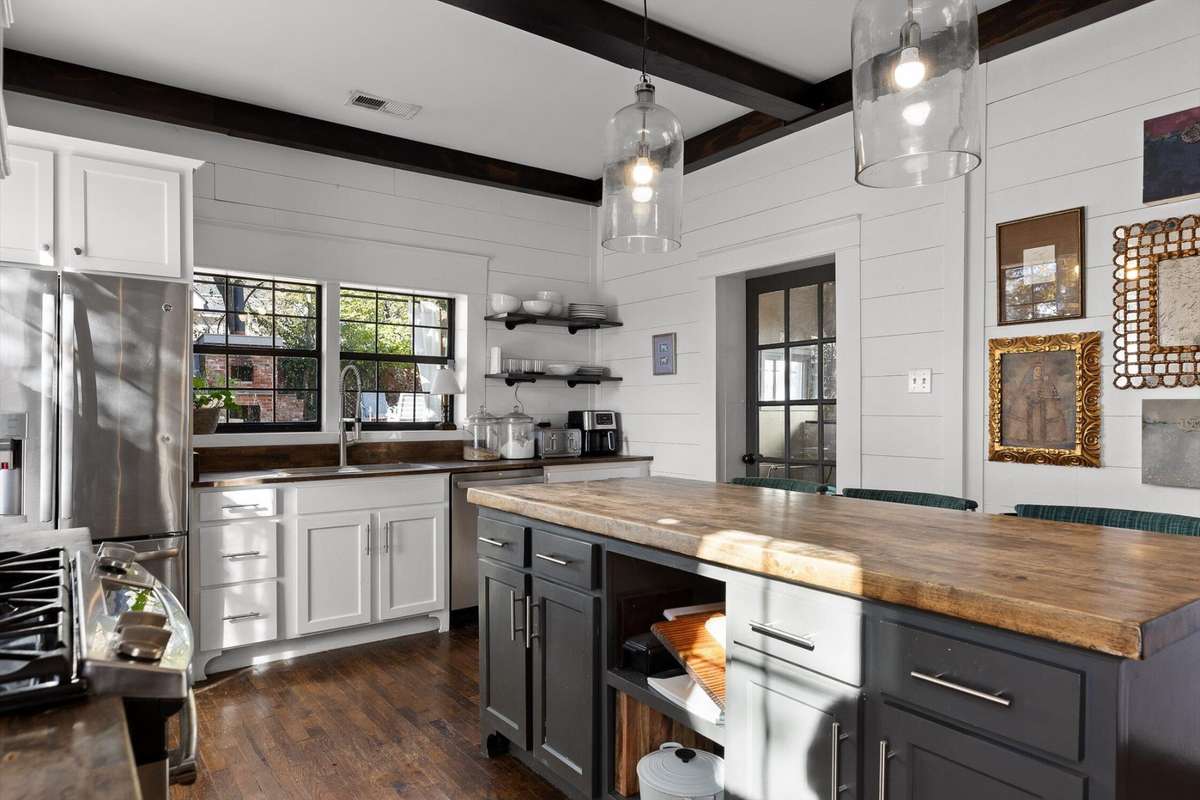 The main house features thoughtfully updated spaces that maintain the home' s historic integrity: 2 bedrooms, and 2 fully updated bathrooms including tiled showers. The kitchen provides a spacious environment for baking or entertaining, featuring custom cabinetry, gas range, floating shelves, ample countertop space, and a large island.
