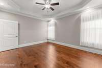 Step inside to discover a spacious living area adorned with a coffered ceiling and a gas fireplace adding a touch of warmth. The Master Suite features a trey ceiling; the ensuite bath area boasts a '' Roman Shower' ' complete with his/ her sinks and a '' Command Center'' . The walk in closet is cedar lined with a clothes folding table for convenience.