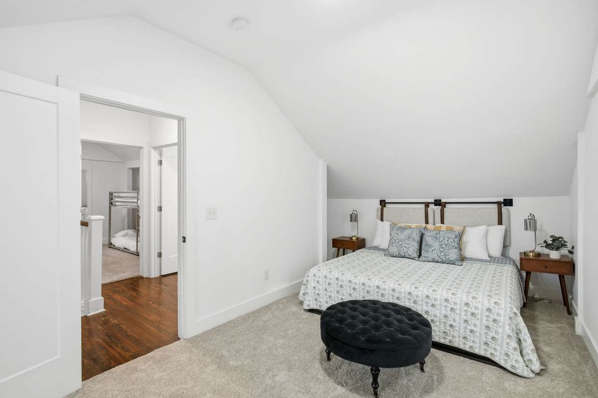 Full of character, the home features original hardwood floors, arched doorways, a classic stone fireplace, and an extra- wide front porch complete with a porch swing! This sets the tone for the warm, quirky, and inviting vibe throughout. Inside, a thoughtful layout offers flexibility and comfort, highlighted by a renovated kitchen and beautifully updated bathrooms. With 5 bedrooms, you’ll have plenty of options for a home office, studio, music room, or guest space.