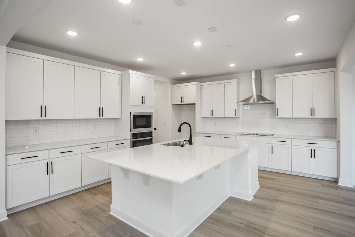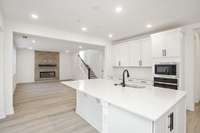 The GOURMET KITCHEN, appointed with all STAINLESS STEEL appliances and a large island, is OPEN to the LARGE GREAT ROOM. This expansive, seamless space is perfect for hosting gatherings, holiday feasts, or simply unwinding at home. A half bath is conveniently located downstairs for guests.