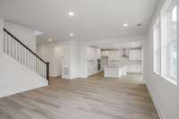The GOURMET KITCHEN, appointed with all STAINLESS STEEL appliances and a large island, is OPEN to the LARGE GREAT ROOM. This expansive, seamless space is perfect for hosting gatherings, holiday feasts, or simply unwinding at home. A half bath is conveniently located downstairs for guests.