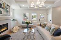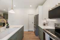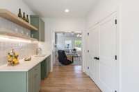 The open- concept main floor is filled with natural light and anchored by a kitchen featuring quartz countertops, a designer tile backsplash, and custom cabinetry—flowing seamlessly into the dining and living areas for effortless entertaining. Downstairs also includes a convenient laundry room and a stylish powder bath.