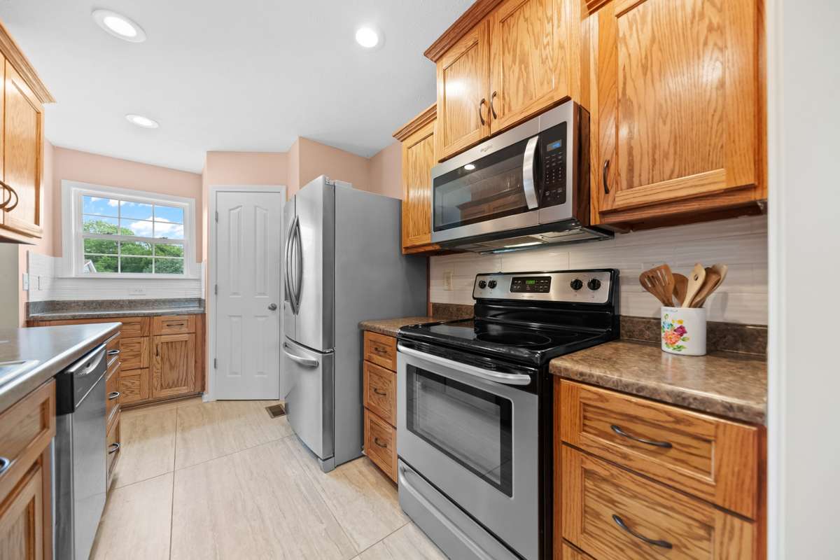 Spacious 4 bedroom, 3 bath home in Armstrong Meadows offering 2, 042 sq ft on nearly half an acre with tree- lined privacy. Enjoy a formal dining room, galley kitchen with oak cabinets and stainless appliances and open concept living room area with stone feature wall and direct access to spacious deck. TWO primary suites, both with full baths perfect for multi- generational living or hosting guests. 3 bedrooms are located on the main level, while the fourth bedroom downstairs offers flexibility and could be used as a separate den/ living area, man cave, home gym, or office. Additional features include: Oversized 10x10 laundry room off the garage, perfect for a mudroom/ drop zone, Walk- out 2- car garage with epoxy floors, Low- maintenance landscaping. No HOA for this address! Don’t miss this opportunity to own a spacious, move- in- ready home with room to grow in a fantastic location. Schedule your showing today!