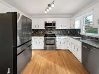 backsplash and stainless- steel appliances. Enjoy plenty of storage throughout,