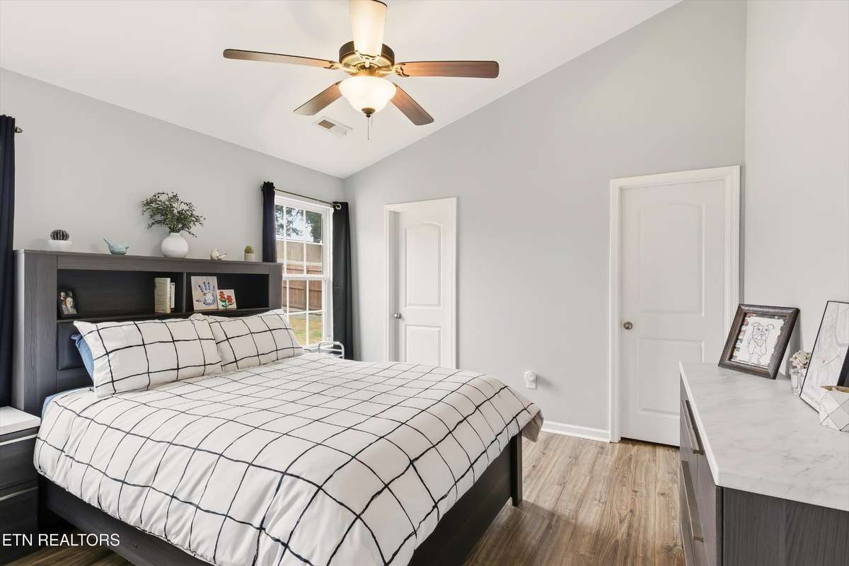Charming ranch home in the desirable Ely Park subdivision, offering access to community amenities including a swimming pool, playground, and more. This inviting home features a covered front porch and a bright living room with vaulted ceilings, creating an open and airy feel. The dining area flows seamlessly from the living space, perfect for entertaining.
