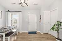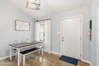 Charming ranch home in the desirable Ely Park subdivision, offering access to community amenities including a swimming pool, playground, and more. This inviting home features a covered front porch and a bright living room with vaulted ceilings, creating an open and airy feel. The dining area flows seamlessly from the living space, perfect for entertaining.