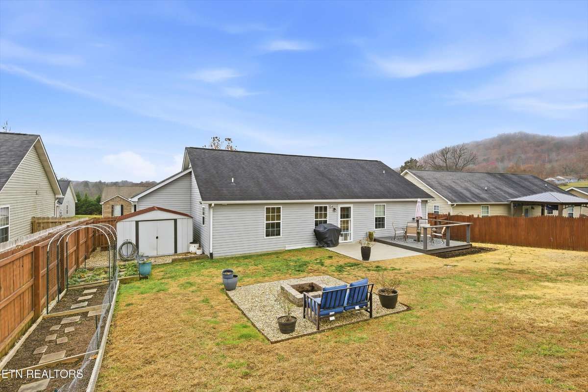 Step outside to a fully fenced backyard with a deck, patio, fire pit, garden beds, and a storage shed, ideal for relaxation and outdoor fun. Completing this home is a spacious two- car garage.