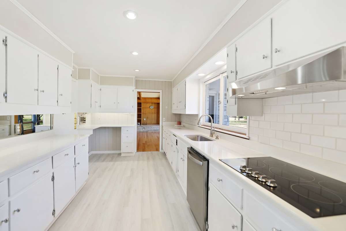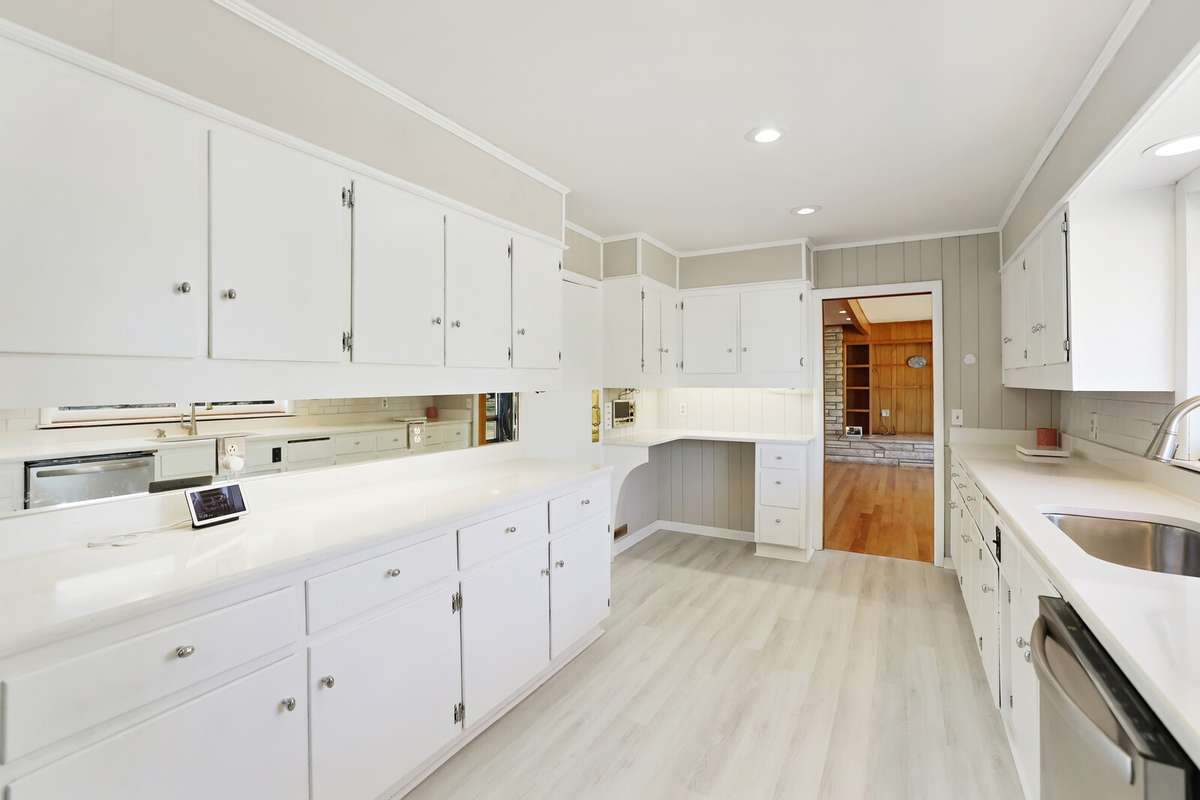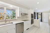 Recent renovations elevate the home’s appeal, including new flooring, updated kitchen with sleek quartz countertops, stainless steel appliances, and a brand- new roof.