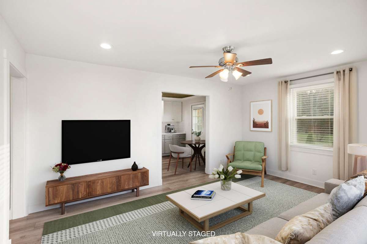 Close to downtown and minutes to the airport. Move- in- ready and very well- maintained three- bedroom 1- bath home that is freshly painted inside and out. New roof in 2022. Beautifully landscaped with hard- wired landscape lighting on a timer. New blown- in insulation. functional kitchen with soft- close cabinets and side entry to the concrete driveway. You will love the big backyard and the covered patio, perfect for hanging out or having friends over. There is also a storage shed that remains, and the house sits on a quiet street just a 4- minute walk to the elementary school.