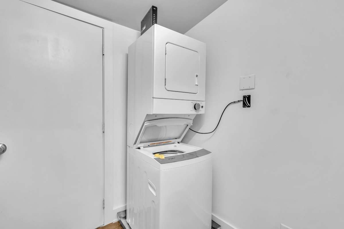 Additional highlights include in- unit laundry, secure building access, and 2 dedicated parking spots.