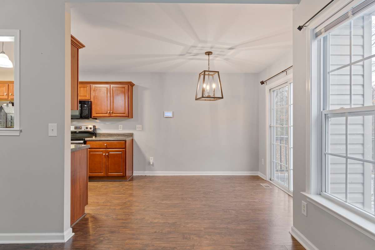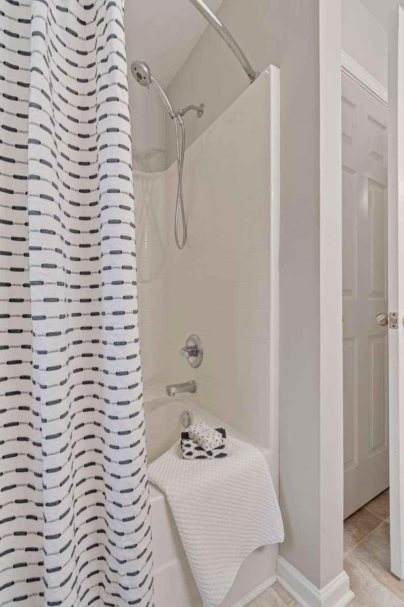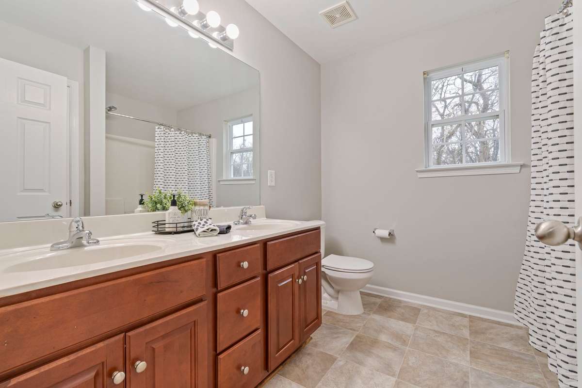 Inside, you’ll find soaring ceilings and a functional, well- designed floor plan. The primary suite includes a generous walk- in closet and an en- suite bathroom complete with a large soaker tub/ shower combination and double vanities. The cool tones of the paint throughout makes it feel fresh and modern.