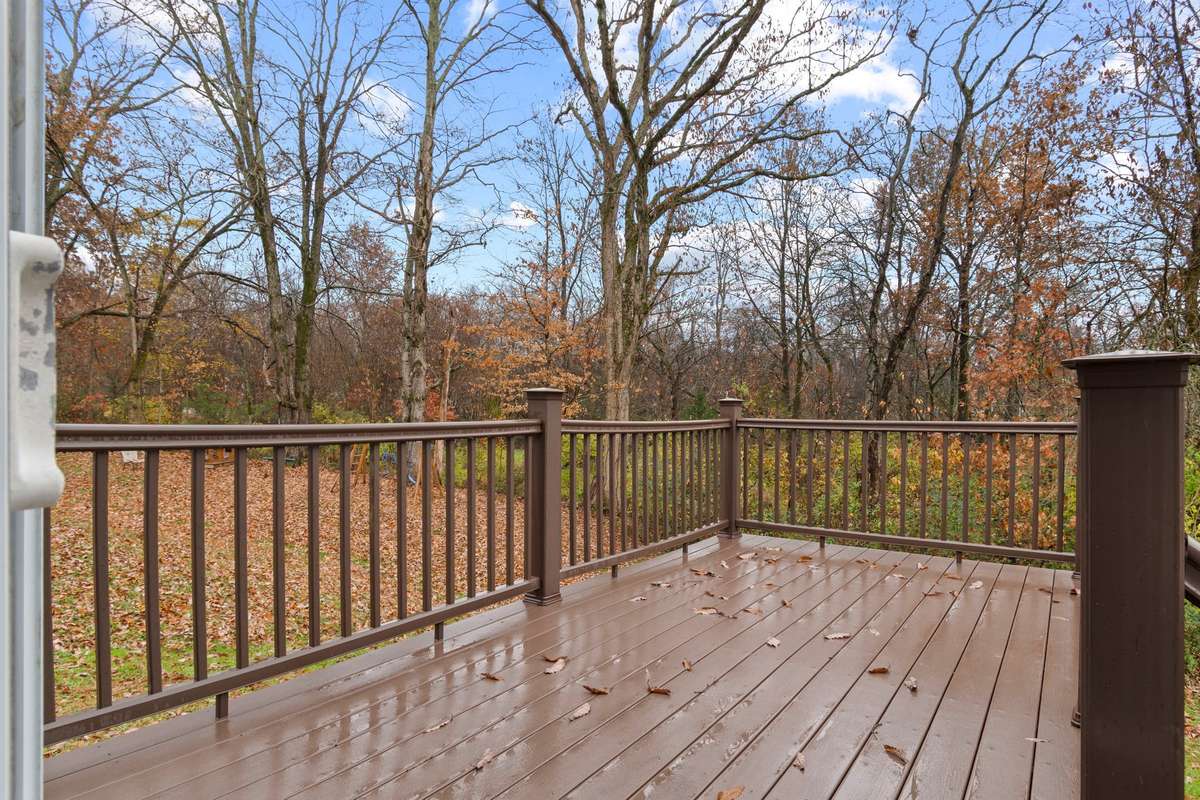 Back yard: offering Trex decking and patio with enhanced privacy as it backs up to a neighboring property situated on several acres