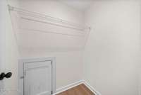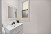 The main- level primary suite provides a peaceful escape, complete with an en- suite bath featuring a step- in shower.