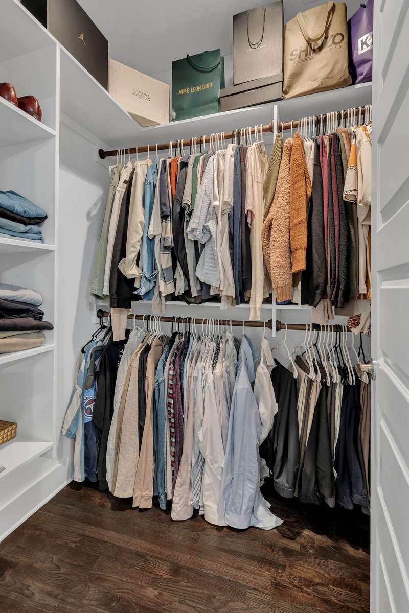 Inside, the home boasts a bright open floor plan with 10 ft ceilings on the main level, a custom shiplap fireplace, quartz countertops, and a gas stove/ oven. The second floor offers two primary suites with walk- in closets for ultimate comfort and flexibility.