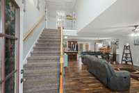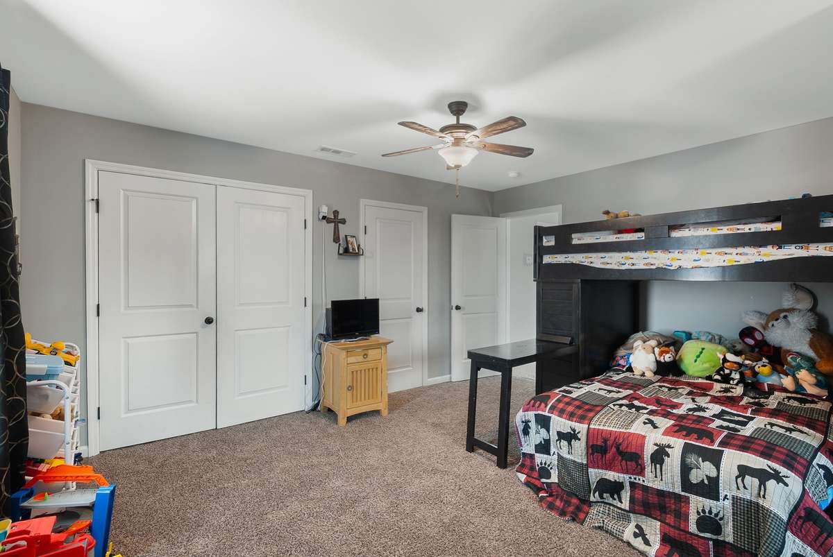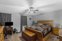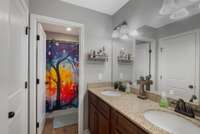 The main- floor primary bedroom is a true retreat—large and comfortable with its own attached bathroom and walk- in closet. Upstairs, you’ll find two additional oversized bedrooms, each with abundant natural light and plenty of room to spread out. A well- appointed full bathroom with double sinks completes the upper level, making it ideal for guests, family, or a home office setup.