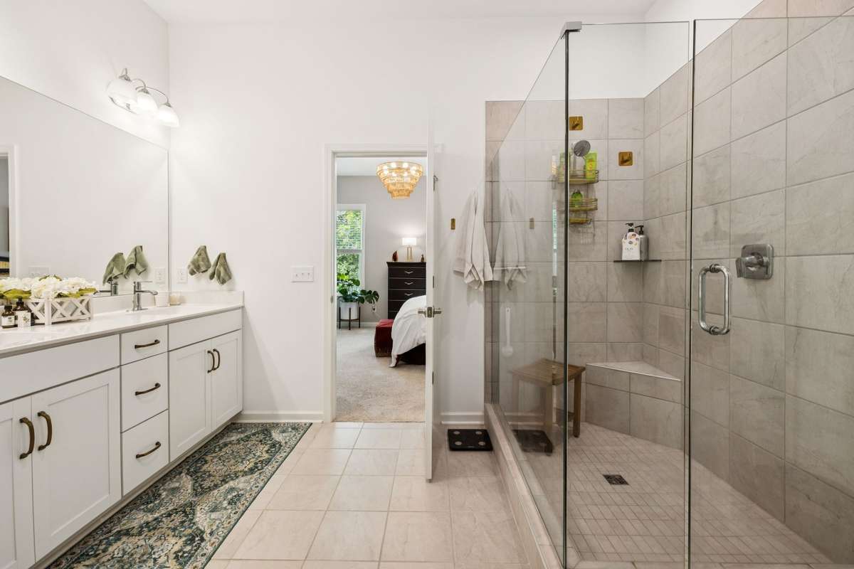The primary suite feels like its own oasis, featuring a spacious seamless glass and tile shower and a calm, relaxing atmosphere. A charming front porch adds curb appeal and gives you an extra spot to enjoy your mornings or welcome guests.