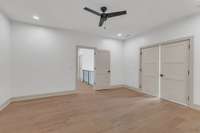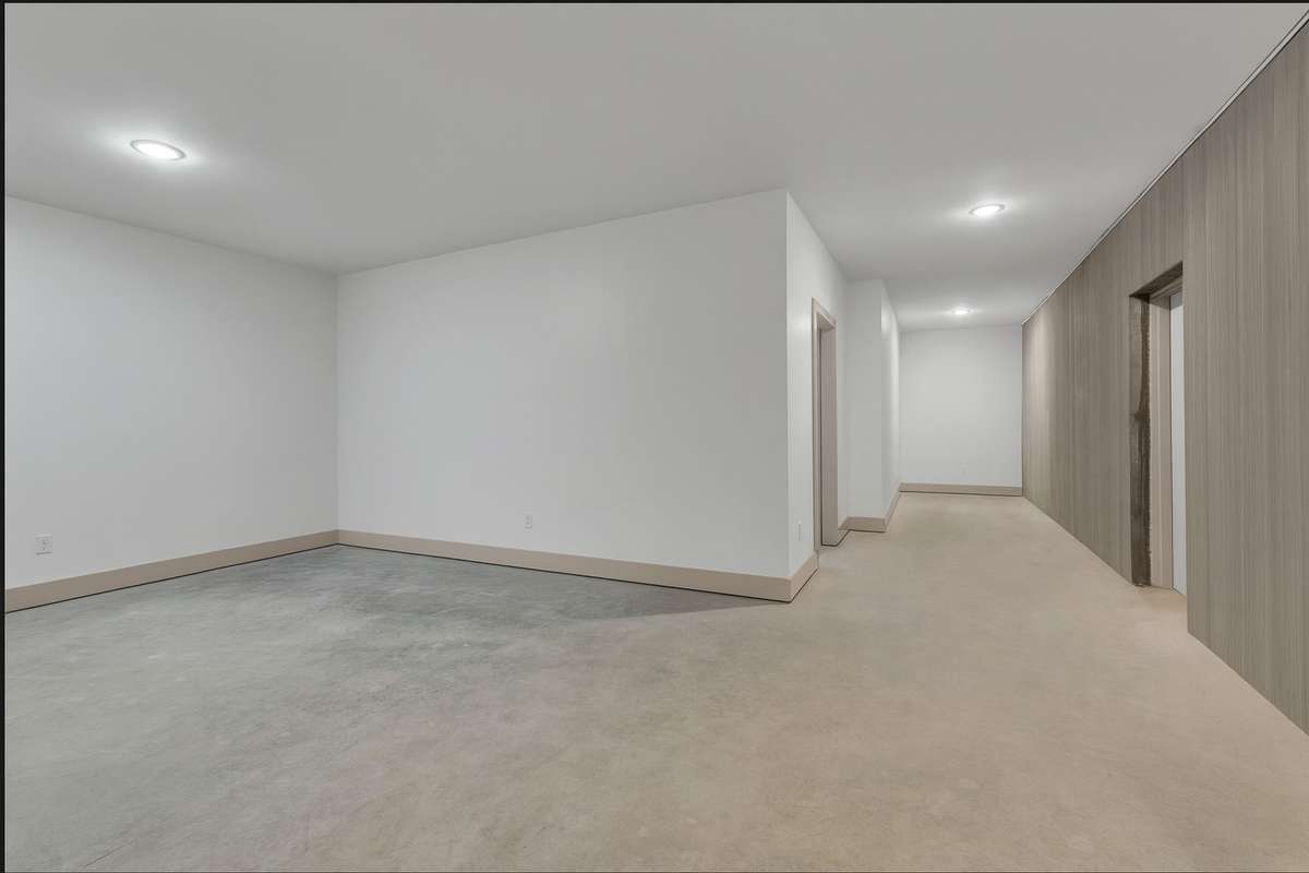 Photo shows the lower-level secure area with commercial-grade steel-door entry, fully finished interior and integrated tech infrastructure—ideal for a dedicated safe-room or command centre