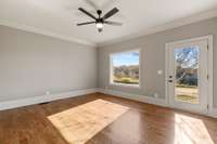 If you' re seeking land in an ideal location accompanied by a beautiful home, look no further! This sprawling country estate is almost 9 acres on Hickory Ridge Road, 4800+ sq ft that has been Completely Remodeled down to the studs, double primary bedrooms on the main floor, and a Full Basement! This is the perfect blend of country charm and modern conveniences! 3/ 4" solid Oak Hardwood floors throughout all living areas ( only carpet is in the Rec room over garage) , Upgraded Appliances w/ Custom Cabs, 3 pantries, Quartz in all wet areas. Custom closets throughout. 4 car total garages w/ pedestrian doors. No HOA ( Bring on the farm animals and go fishing) ! Just a few odds and ends to be completed. Check out the video below!