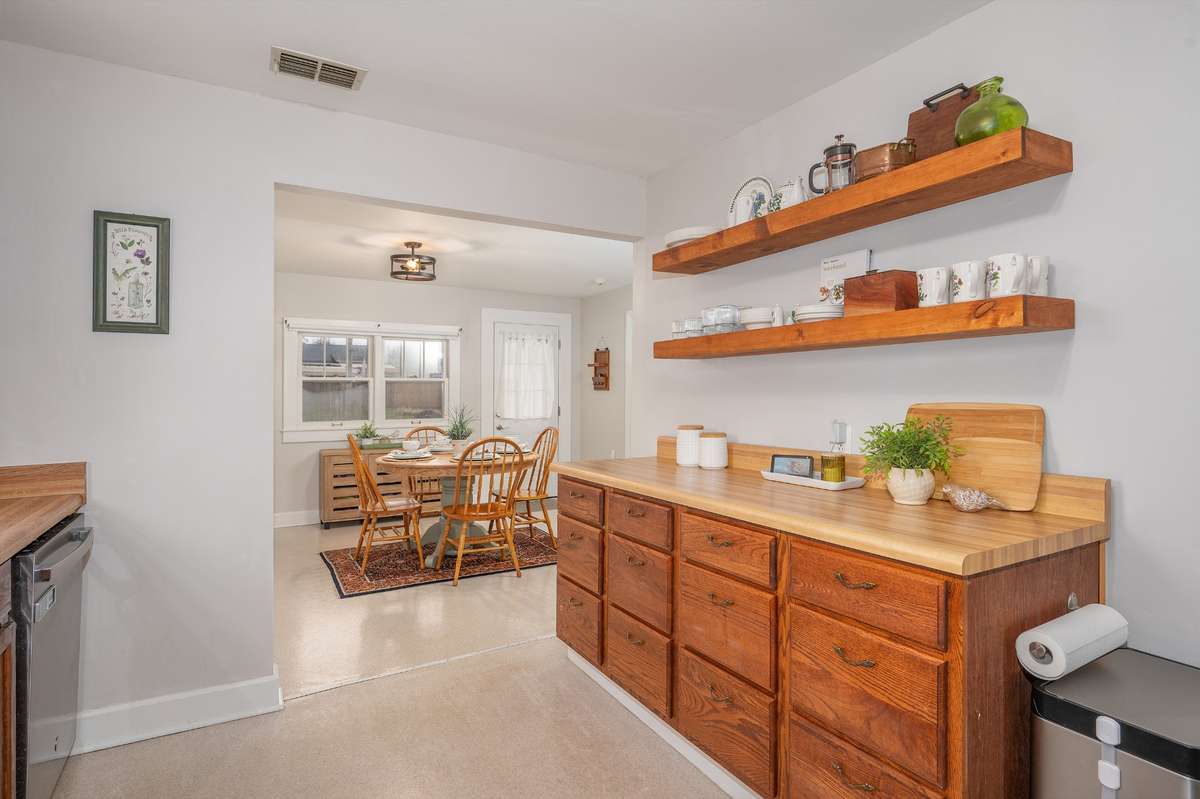 This picture- perfect cottage offers 3 bedrooms and 2 bathrooms filled with charm and comfort. The primary suite features a tiled shower and a walk- in closet. Freshly painted inside and out, the home also includes a new HVAC, refinished flooring in the den and two bedrooms, updated plumbing in the second bath, and a new front porch rail. Fridge, dishwasher and microwave only a year old. The fenced backyard is a dream space with room for a garden, pets, or play. The detached garage has electrical service and is ideal for storage or a workspace. Attic storage adds even more versatility. Kitchen refrigerator, garage refrigerator, washer, and dryer all remain. Conveniently located just minutes from Downtown Murfreesboro, MTSU, Costco, and Old Fort Pkwy, this home pairs charm with unbeatable convenience.