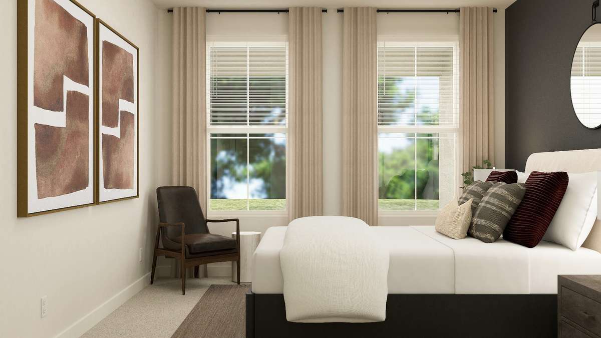 LOT # 219- Davenport Floorplan. With fantastic features including a mudroom at the garage entry, this new two- story home boasts a spacious and modern layout with a convenient bedroom and full bathroom off the foyer, leading to an open- concept floorplan that combines the kitchen, living and dining areas. Upstairs, three additional bedrooms surround a versatile loft space, including the comfortable owner’s suite with an en- suite bathroom and walk- in closet. * Images are rendered. Actual configuration and features may vary.
