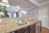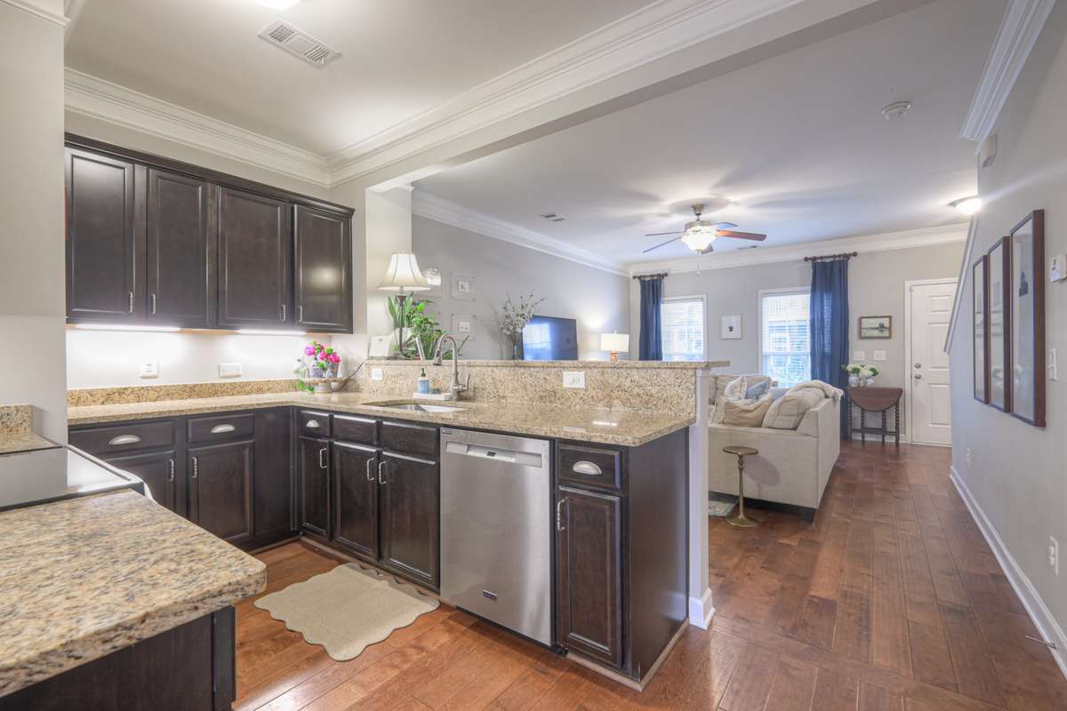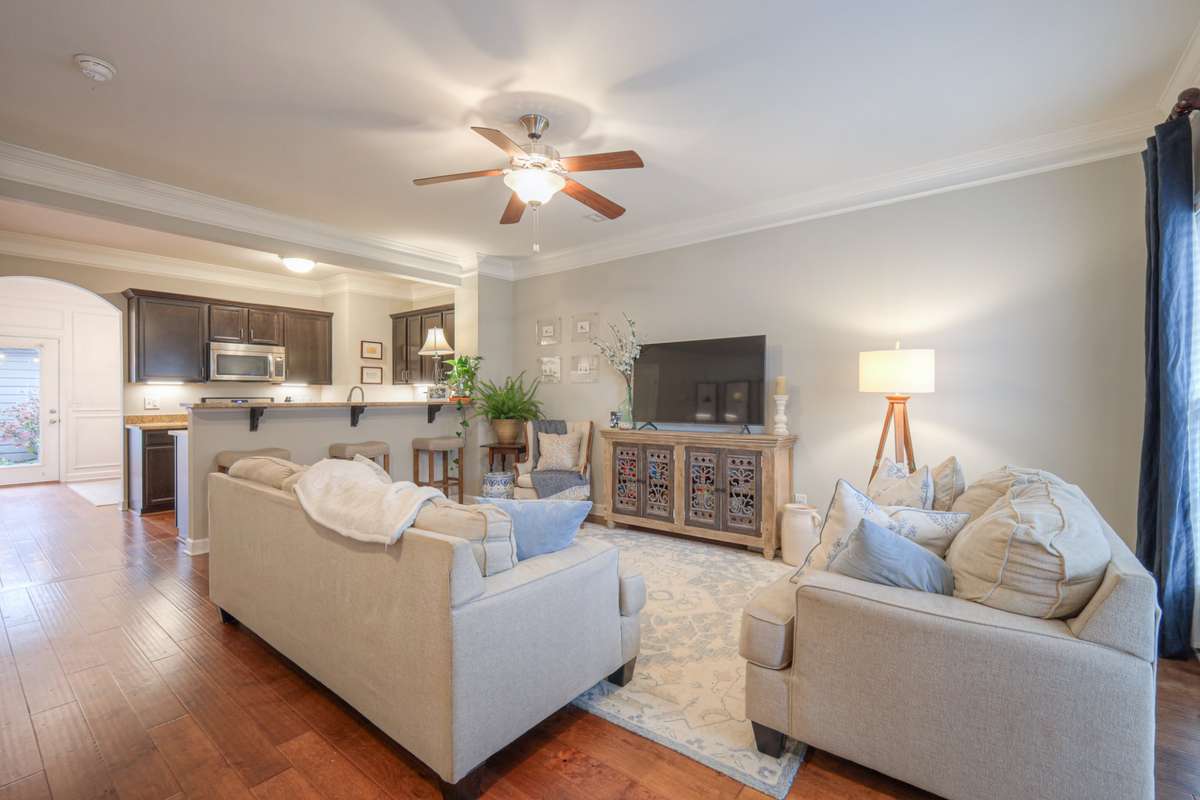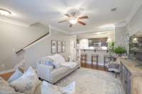 Adorable and well- maintained 2- bedroom townhome featuring an open downstairs layout with a dedicated dining area and spacious living room. The main level showcases new hardwood flooring, crown molding, and picture- frame molding in the formal dining room for an elevated touch. The kitchen and laundry areas include thoughtful upgrades such as custom pantry shelving with deep storage, custom laundry shelving with upgraded lighting, and under- cabinet LED lighting. A refreshed half bath features large- format, marble- look hex tile. Upstairs, both bedrooms are privately situated with comfortable carpeting. Outside, the backyard has been beautifully transformed with stone accents, new plantings, and a drip irrigation system, offering a relaxing and inviting outdoor space. Conveniently located off Hwy 99, this home is close to shopping, dining, and interstate access for everyday ease and convenience.