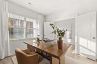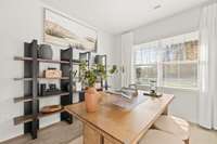 The Mayflower floorplan welcomes you with thoughtful details and plenty of space for everyone. On the main floor, you’ll find a study with French doors—ideal for working from home—along with a comfortable bedroom and full bath for guests. The open kitchen, dining, and living areas are filled with natural light, and the kitchen includes all appliances ( yes, the fridge too!) . Blinds and select smart- home features are already in place to make everyday living easy. Head upstairs to discover a spacious loft, two secondary bedrooms with walk- in closets, and an impressively large primary suite that’s perfect for relaxation. It’s a bright, beautiful home designed with today’s lifestyle in mind. Images from artist rendering. Actual configuration and features may vary.