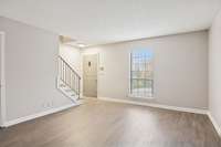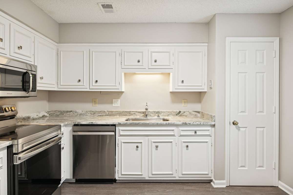 Absolutely phenomenal location with super quick access~ brand new granite in kitchen ( 2025)~ large sink~ HVAC+ water heater replaced in 2019~ brand new paint ( 2025)~ newer LVP flooring throughout~ newer refrigerator ( 2024)~ new dishwasher+ range ( 2025) , newer fixtures throughout~ built in desk nook~ great, private location right across from greenspace and backs to trees~ freshly cleaned carpet on the steps~ renovated full bath, newer toilets. This one is ready to go!