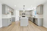 Stunning 4BR/ 2. 5BA open floor plan. Massive great room with 9ft ceilings and shiplap fireplace opens to the kitchen. Kitchen with island seating and tons of cabinets featuring soft close drawers/ doors, quartz tops, tiled backsplash and pantry. Gas range/ oven is wired for electric as well. Enter from the 3- car garage into a large laundry/ mud room with storage cabinets and a drop zone. All bedrooms on upper level with large walk- in closets, a bonus room ( with closet) could be 5th bedroom. Primary suite has full bathroom with double vanity, separate tiled shower, tub and walk- in closet. Gas heat on main level and electric heat on upper level. Covered front porch and large covered rear patio.