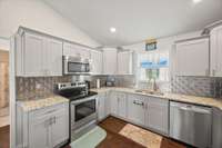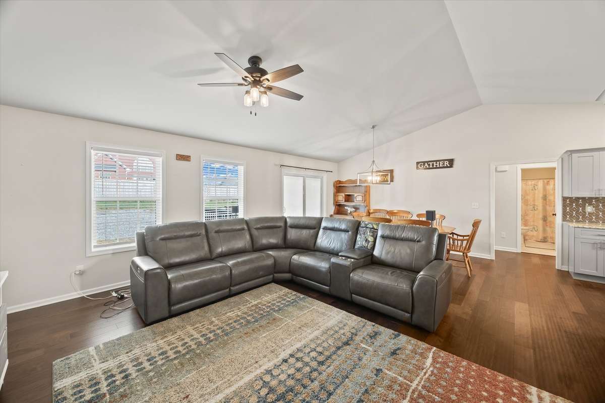Like new ( but priced better) , This open floor plan home has a refreshed kitchen with new, designer cabinetry, granite countertops, and stainless appliances. The vaulted great room gives you that open and airy vibe. Solid surface flooring throughout the home is an upgrade you' ll love and so is the expansive . 82 ac yard!