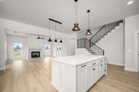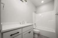 This home checks all the boxes. The first floor plays host to the primary bedroom and a guest room or office; a deluxe kitchen with quartz countertops, whirlpool appliances, and custom cabinets; and a primary suite with full tile shower and freestanding soaking tub. The second floor boasts two additional bedrooms and a large bonus room area to be used as playroom, media room, etc. The living room fireplace and oversized garage are just a couple highlights to come see in person! Schedule a showing today!