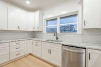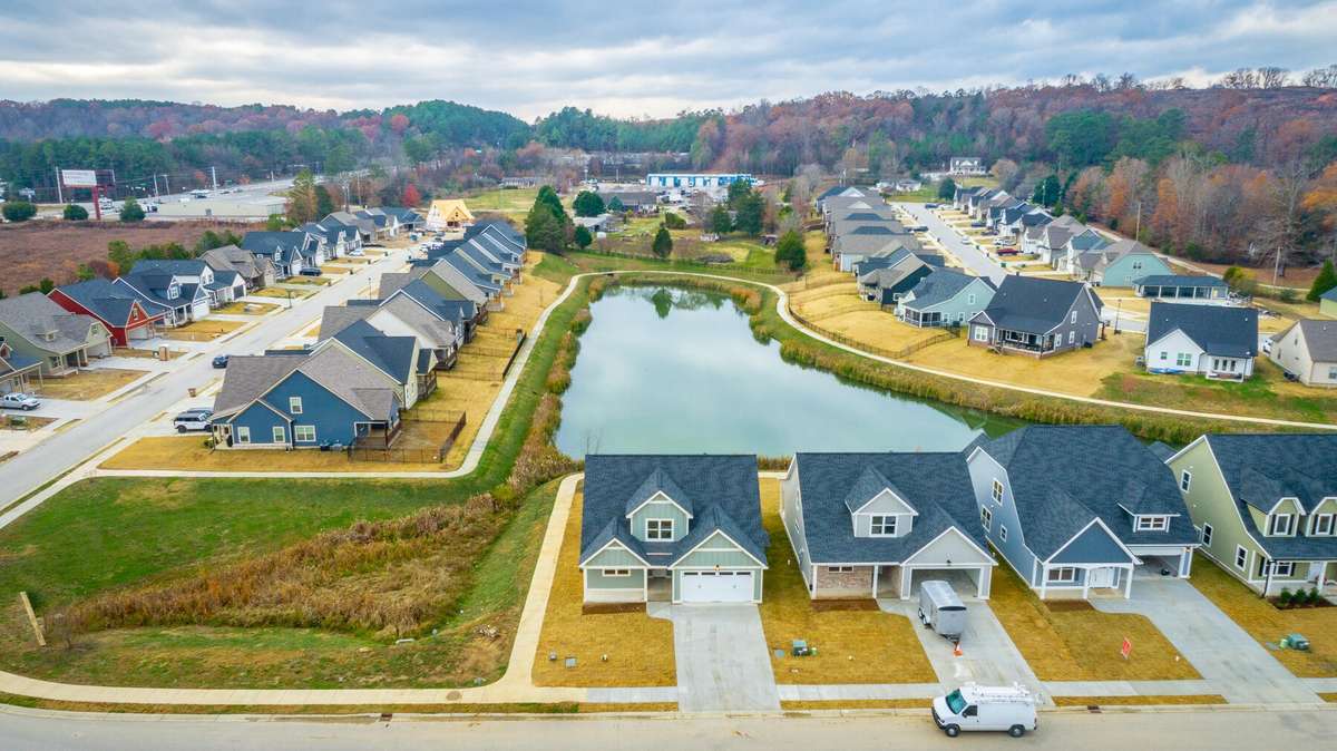 Open House Sunday 2- 4pm! This brand- new 4 bedroom home in The Grove offers 2 full baths, 2 half baths, and 2, 050 square feet of comfortable living space. Nestled on a premium homesite with an open community lot to the left ( no neighbor the left side) , it provides additional privacy and unobstructed views over the community pond - with stunning sunset views to enjoy! Located in the highly desirable Heritage school zone, The Grove is just minutes from the intersection of Battlefield Parkway and Pine Grove Road, only 2. 7 miles from I- 75, 19 minutes from downtown Chattanooga, and 23 minutes from Dalton. The charming, sidewalk- lined community features an inground swimming pool, walking paths, and the picturesque pond right at your back doorstep. The exterior of this home features low- maintenance fiber cement siding and brick, energy- efficient low- E vinyl windows, a zero- entry raised slab foundation ( no steps to enter the home) and a fully sodded, professionally landscaped yard. Step inside to an inviting foyer that flows into an open- concept main level filled with natural light and direct pond views. Luxury vinyl plank flooring in a warm wood tone runs seamlessly throughout, complemented by soft Shoji White walls. The spacious living and dining areas feature abundant windows for ample natural light and views. The upgraded kitchen is a standout, boasting extensive cabinetry, pantry, granite countertops, a tiled backsplash, custom cabinet hood, slide- in range, pendant lighting over the peninsula, a slide- in range, and a convenient microwave drawer. A stylish half bath with wood vanity, granite countertop, and classic checkerboard flooring is tucked near the owner' s entry from the two- car garage, alongside a well- appointed laundry room. Tucked at the rear of the home for maximum tranquility, the vaulted main- level primary suite enjoys abundant natural light and direct pond views.
