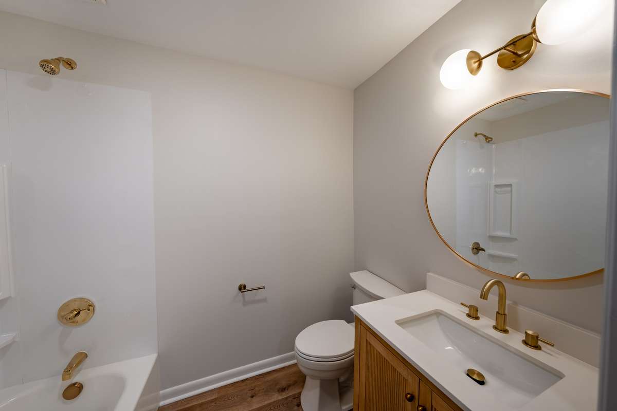 Fully remodeled 2 bed, 2 full bath condo in Kingswood Condominiums. This 1043 sq ft, first- floor end unit was completely updated in 2025 with new LVP flooring, paint, quartz counter tops, appliances, water heater, and HVAC. Spacious layout with a dedicated laundry room, assigned parking, and visitor parking. Enjoy a private balcony overlooking open green space, woods, and a creek—great for pets or kids.