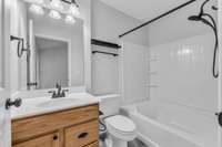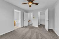 Upstairs you’ll find two spacious suites, each with its own bath, garden tub, and walk- in closet big enough to make your storage bins sigh with relief. A laundry room sits perfectly between both bedrooms—because carrying baskets up and down stairs is nobody’s hobby.