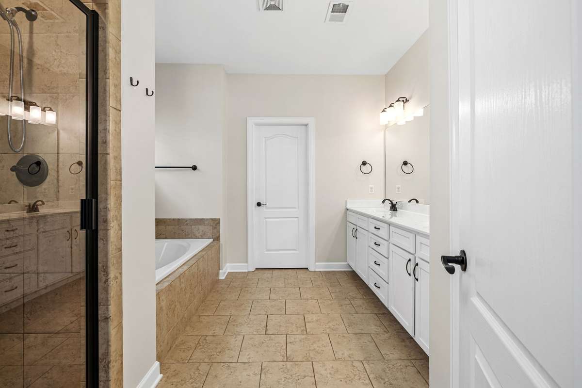 Retreat to the spacious primary suite located conveniently on the main floor. It features a stylish shiplap accent wall and an en- suite bathroom equipped with a separate tub and shower, as well as dual sinks for added convenience.