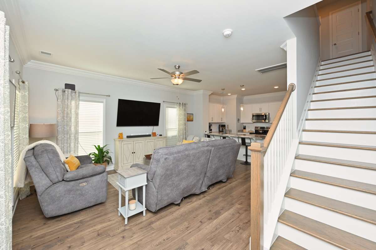 Quick Move In! This craftsman Townhouse features a stunning brick and James Hardie exterior with a covered front porch! This Townhouse features 2 bedroom, 2. 5 baths, flex room on the first floor, and a private back patio. Upstairs has HUGE primary suite with tons of light and walk in closet. Great separation between Primary bedroom and secondary bedrooms. This Townhouse offers blinds on every window and a stainless steel refrigerator/ freezer. PREFERRED LENDER OFFERING A 1% LENDER CREDIT BASED UPON LOAN AMOUNT.